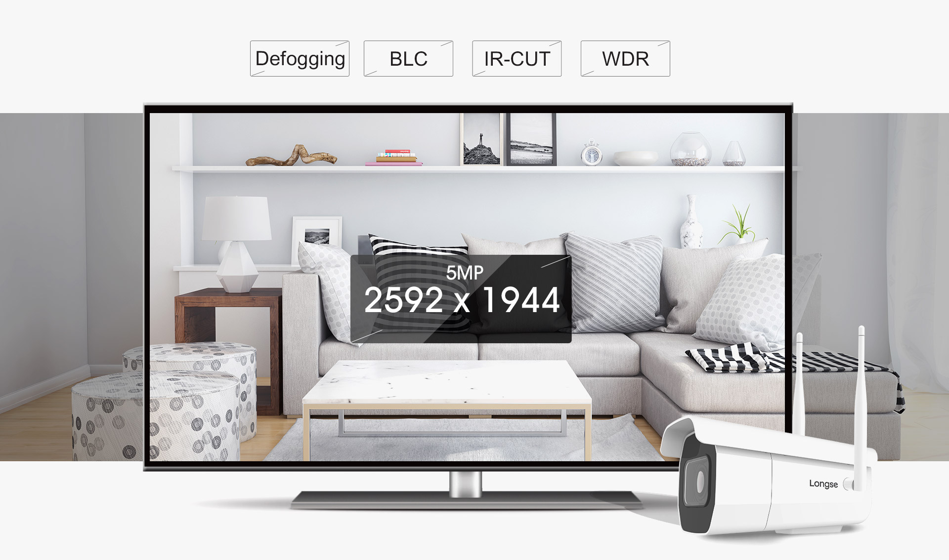 寻觅屏幕中的细节,将绝不吃力。长视500万WIFI双天线收集摄像机接纳1/2.7英寸高分辩率CMOS传感器,装备500万高清镜头,能显现2592 x 1944的高清画质,一旦利用,你便会爱不释手。